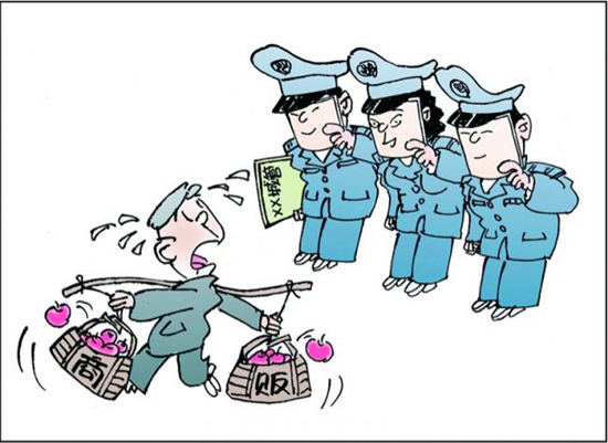 我問了坐在門口的城管:“誰(shuí)是管事的?”小伙子朝里邊努了努嘴。里邊一間狹小的辦公室里許多人在圍著一個(gè)四十歲上下的城管說情。進(jìn)了辦公室,我朝著那位問了句:“你們抓占道經(jīng)營(yíng)小攤小販,為什么把拉架的路人也抓了?”他說:“你說的是那位老太吧,她可不是什么路人,她炸油條、賣油條,阻撓執(zhí)法、煽動(dòng)鬧事……”我聽后氣不打一處來,強(qiáng)壓著怒氣說了句:“這里說話不方便,能否借過一步。”