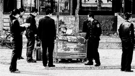 說真的,看到他蓬頭垢面、饑餓困乏的樣子,我心里對(duì)城管有了點(diǎn)同情,都是為工作都不容易,何必跟誰(shuí)去較真呢!