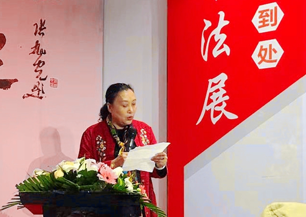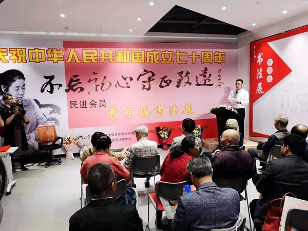 開幕現(xiàn)場,中國民主促進會陜西省委員會專職副主委閔生華、西安藍溪絲路文化公司副總經(jīng)理史良、西安高新區(qū)書法家協(xié)會主席李艷秋、陜西省老年書法家協(xié)會原會長黎牧樵分別發(fā)言。藝術(shù)家曹京梅老師致答謝詞,她的眾多學生和家長為她獻上一束束鮮花,表達對曹老師的感謝及對本次展覽的祝賀,同時也是對曹老師近四十年書法教育的感激。