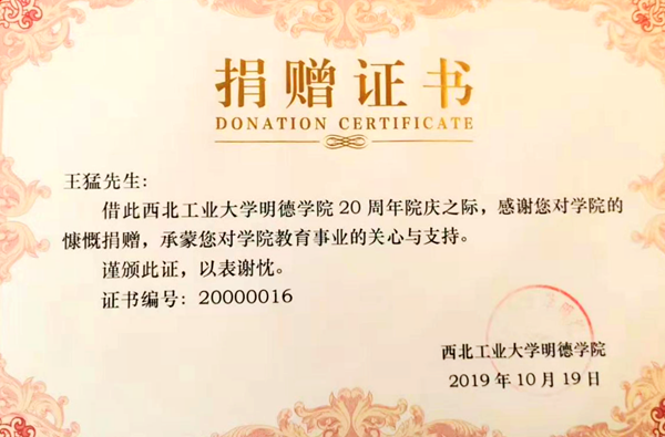 同時(shí),王猛以個(gè)人名義為金葉明德獎(jiǎng)學(xué)基金捐贈(zèng),并當(dāng)選金葉明德獎(jiǎng)學(xué)基金理事。