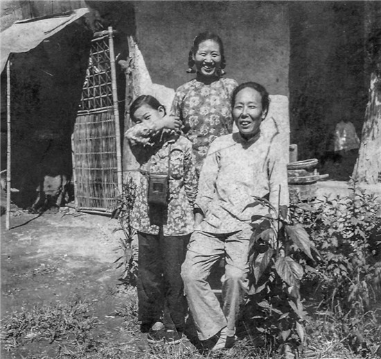 竇曉莉(左)和叔祖母卜淑賢(右)和左艷芳(中,曉莉母親)在后院