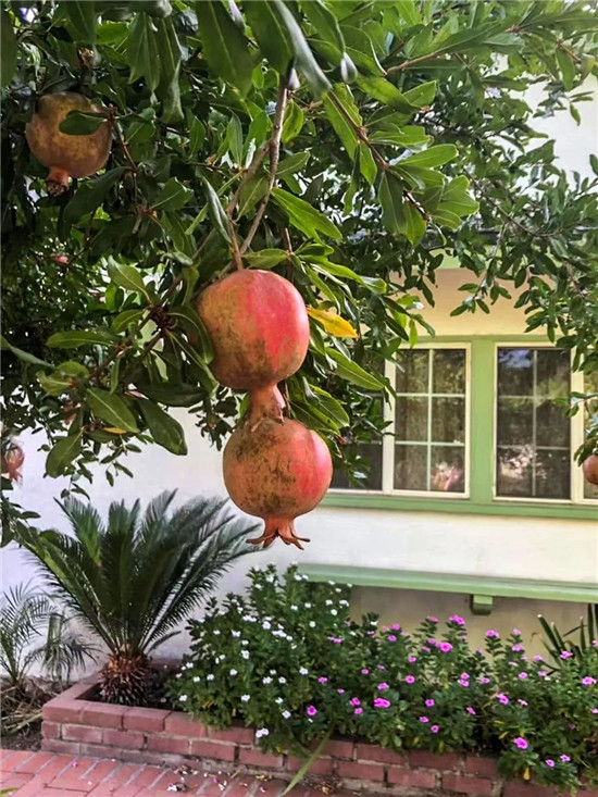 有一天他專(zhuān)門(mén)買(mǎi)了十多棵石榴樹(shù),帶著我挖坑,澆水將它們種在后院的一圈。記得叔祖父指著西墻角的一棵石榴樹(shù)對(duì)我講:“這棵就屬于你的了,記著澆水,”。我很喜歡這棵長(zhǎng)的好看的石榴樹(shù),但大煉鋼鐵盤(pán)爐子后,樹(shù)就不見(jiàn)了。從那以后,我和叔祖父一樣有了石榴樹(shù)情結(jié),現(xiàn)在我在洛杉磯的院子里也種了一棵石榴樹(shù),這是對(duì)叔祖父的懷念也是為了那棵永遠(yuǎn)也找不到的石榴樹(shù)。
