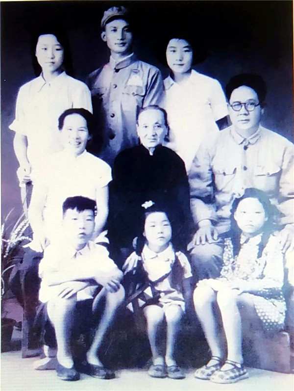 ▲前排左起:兄、作者、五姐;中排左起:母親、奶奶、父親;后排左起:三姐、二姐夫、二姐