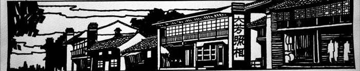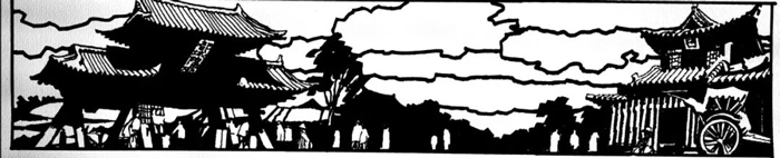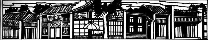 陶滸為新裝修春發(fā)生飯店設計的鑲嵌在大門兩側上部的西圖 |