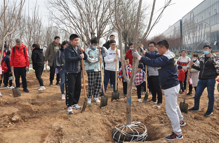 ▲志愿者帶領(lǐng)濟南星神的特殊兒童植樹