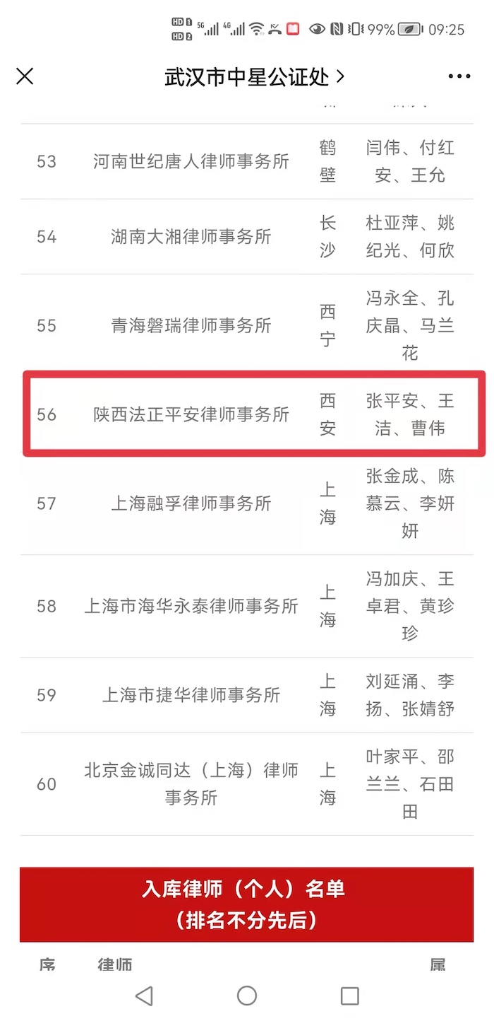 1月21日,經(jīng)專家評審組審核評定,陜西法正平安律師事務(wù)所等60家律師事務(wù)所(含律師事務(wù)所擬安排的具體經(jīng)辦人員172名律師)入選武漢市中星公證處遺產(chǎn)管理人機(jī)構(gòu)庫首批名單。