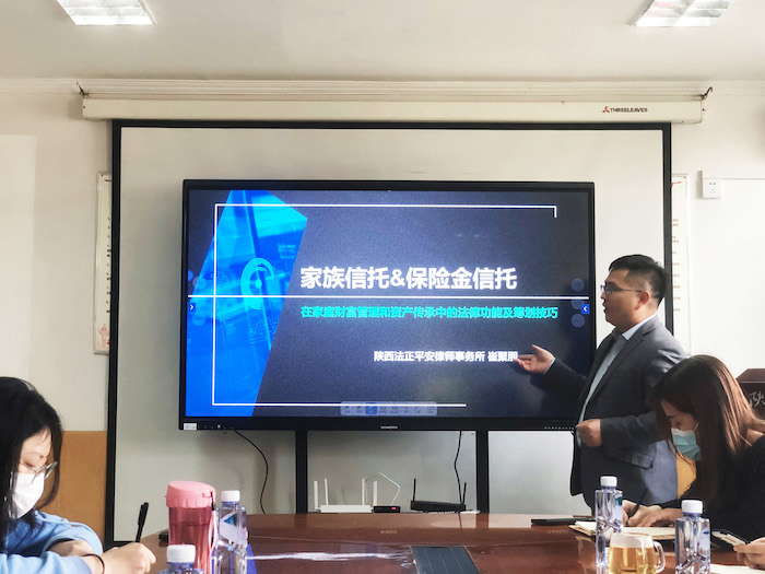 近幾年來,“家族財(cái)富管理與傳承”業(yè)務(wù)成為新晉熱門領(lǐng)域,家族財(cái)富與傳承究竟包含哪些法律服務(wù)?該領(lǐng)域的核心要點(diǎn)是什么?發(fā)展趨勢(shì)又是什么……4月13日,陜西法正平安律師事務(wù)所進(jìn)行了《家族信托與保險(xiǎn)金信托——在家庭財(cái)富管理和資產(chǎn)傳承中的法律功能及籌劃技巧》培訓(xùn)。財(cái)富傳承部崔聚鵬律師宣講。