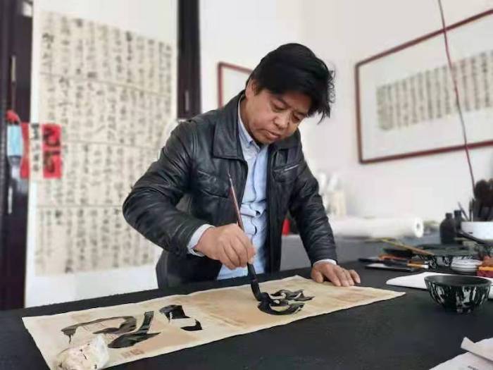 曹永濤,男,陜西咸陽人,1973年11月生。自幼愛好書畫,刻苦臨習(xí)顏體、柳體、魏體等名帖。1995年來西安工作后,多次赴碑林揣摩古人真跡,汲取精髓、潛心法度。在西安工作期間,幸得著名書法家石憲章、鐘明善、鄭墨泉等名家精心指導(dǎo),并長期臨帖研習(xí),在書法道路上不斷進(jìn)步。上溯周秦漢魏,下追宋元明人,諸體皆涉,尤擅行草,兼修篆隸諸體,重點(diǎn)研習(xí)二王、懷素、張旭、王鐸、米芾、黃庭堅(jiān)等諸家書體,基礎(chǔ)廣博深厚,風(fēng)格蒼勁雄渾,數(shù)百幅書法作品被國內(nèi)外書畫愛好者及文化交流人士廣為收藏。
