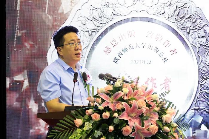 任曉偉講話,他代表學(xué)校,向榮獲總社2021年度突出貢獻(xiàn)作者、優(yōu)秀作者的各位專家學(xué)者表示祝賀,對(duì)大家一直以來(lái)對(duì)陜西師范大學(xué)建設(shè)和發(fā)展給予的支持和幫助表示感謝!他說(shuō)陜西師大出版總社堅(jiān)持高校出版工作的正確方向,以優(yōu)質(zhì)內(nèi)容生產(chǎn)為中心,在人文學(xué)術(shù)、大眾文化、基礎(chǔ)教育、高等教育等出版領(lǐng)域形成鮮明特色,走出了一條獨(dú)具特色的大學(xué)出版之路。廣大作者一直以來(lái)為陜西師大出版總社奉獻(xiàn)精品力作,為出書辦刊出謀劃策,貢獻(xiàn)智慧和力量,我校的出版事業(yè)能夠取得成績(jī),與每一位作者的信任和支持密不可分。相信在上級(jí)管理部門和學(xué)校的指導(dǎo)下,在各位專家作者一如既往的支持下,陜西師大的出版事業(yè)將會(huì)更加枝繁葉茂,為我國(guó)的文化事業(yè)做出更多貢獻(xiàn)。