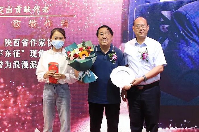 李磊為突出貢獻(xiàn)作者高建群(中)頒獎(jiǎng)