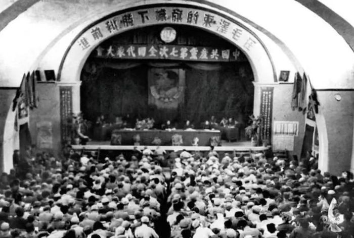 在中共七大上,毛澤東在開幕詞中指出,中國面臨著兩個前途和兩種命運的斗爭,黨的任務是要用全力去爭取光明的前途和光明的命運,反對另外一種黑暗的前途和黑暗的命運。