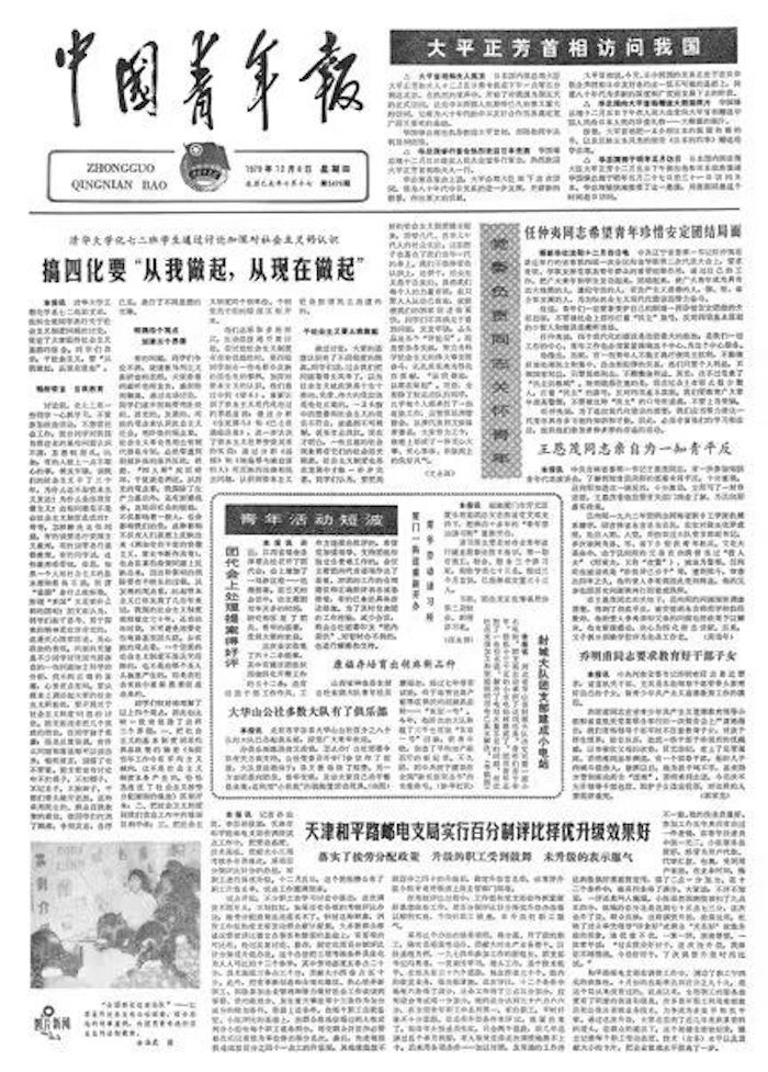 在被“文革”中斷多年后,共青團全國領導機關重新恢復運轉。1978年10月,共青團第十次全國代表大會召開,會議正確評價了經(jīng)歷“文革”磨難的青年一代:低估“四人幫”對青年造成的創(chuàng)傷是錯誤的。但看不到青年的主流,看不到這一主流代表著我們國家的未來和民族的希望,同樣是錯誤的。