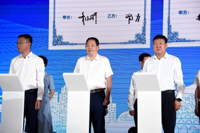 8月14日下午,第六屆絲綢之路國際博覽會暨中國東西部合作與投資貿(mào)易洽談會“新時代·新格局·新發(fā)展”延安市重點(diǎn)產(chǎn)業(yè)鏈招商推介會暨國力黃陵隆坊康養(yǎng)中心等項(xiàng)目集中簽約儀式在西安舉行。延安市委副書記、市長嚴(yán)漢平致辭。延安市政府副市長吳群英主持。國力集團(tuán)董事長鄧力、聯(lián)席總裁李彬元出席會議。