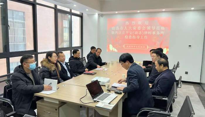 在“12.4”憲法宣傳日來臨之際,12月1日上午,商洛市人大常委會副主任李旭光,商州區(qū)人大常委會黨組書記、主任周建政與人大常委會組成人員代表一行,到陜西法正平安(商洛)律師事務(wù)所調(diào)研指導(dǎo)工作。市人大常委會法工委主任曹建斌,市人大常委會人代工委主任周剛,市人大常委會監(jiān)察和司法工委主任王向陽,市人大常委會專職委員楊莉霞、副主任李華,商州區(qū)人大常委會副主任楊建康、辦公室主任王劍宏,區(qū)司法局副局長雷永杰等領(lǐng)導(dǎo)陪同。