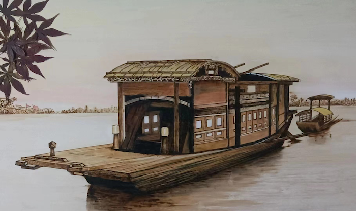 虎丘古稱海涌山,據(jù)考證生成于白堊紀(jì)時(shí)代,距今已有一億五千萬(wàn)年,為“吳中第一名勝”。雖然海拔僅34米,“可以攏而袖之”,但在無(wú)山的蘇州,實(shí)屬難得,被描述為“山林而在塵世,非有穹谷高巖、深林幽澗而名遍寰區(qū)者,吳郡虎丘而已。”《越絕書》卷2載,這里曾是吳王闔閭的墓地。秦始皇曾在此登山攬勝,楚霸王在此埋伏奇兵,晉代司徒王珣和其第司空王珉在此營(yíng)造館舍,虎丘塔所在地還是王珣的琴臺(tái)遺址。蘇東坡曾慨嘆:“到蘇州而不游虎丘,乃憾事也!”二月梅花爛漫開,游人多自虎丘來(lái)。多少錦衣長(zhǎng)袖在此飄過(guò),多少相思情懷在此纏綿,多少美詞佳句在此吟唱……清人顧祿在《桐橋倚棹錄》中暢敘虎丘嬉游之盛:“山近西郭,距閶門不數(shù)里,為商賈交集之地。列肆鱗比,青翰往來(lái),殆無(wú)虛日。往時(shí)游跡盛于中秋,今則端午先后數(shù)日,畫舫珠簾,人云汗雨,填流塞渠,紈绔子又復(fù)征歌選伎于其間,郡中仕女傾城而往。常年操楫者,值增累倍。一日之費(fèi),至罄人數(shù)家之產(chǎn),可為靡然。”因此,整幅作品在虎丘作結(jié),曲終奏雅,笙簫齊鳴,畫面由此推向第三個(gè)高潮。蘇州風(fēng)物如此,焉能不向往之!
