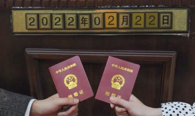 資料圖:一對新人拿結(jié)婚證和日期數(shù)字拍照。中新社記者王剛攝