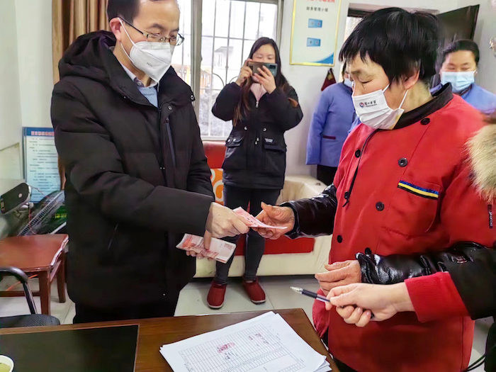 商南縣民政局現(xiàn)場發(fā)放慰問金和慰問物資