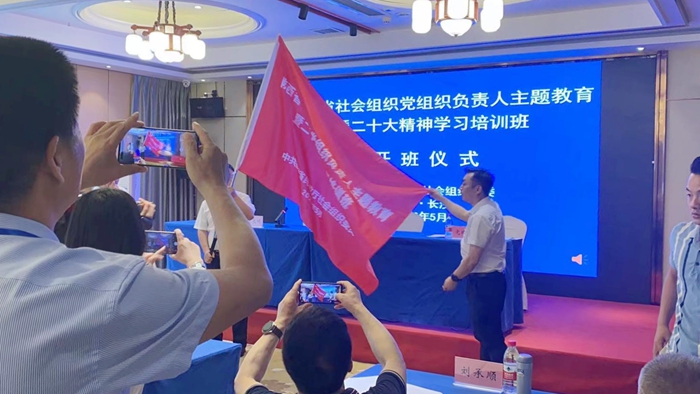 5月29日,陜西省社會組織黨組織負(fù)責(zé)人主題教育暨二十大精神學(xué)習(xí)培訓(xùn)班在長沙開班。陜西省民政廳社會組織黨委委員、黨建工作處負(fù)責(zé)人劉昊同志出席并講話。
