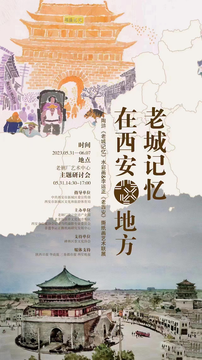 隨著時(shí)代變遷,城市不斷更新,舊街巷、老建筑、老照片以及那些具有鮮明時(shí)代符號(hào)的文字、音樂、電影、戲曲與繪畫,賦予了每一代西安人眼中不一樣的記憶。5月31日至6月7日,畫家陶滸《老城記憶》系列水彩畫作品及李運(yùn)正《老西安》撕紙畫藝術(shù)聯(lián)展,在老鋼廠設(shè)計(jì)創(chuàng)意產(chǎn)業(yè)園以不同的藝術(shù)呈現(xiàn)方式,在作品中重現(xiàn)西安這座老城的過往和記憶細(xì)節(jié),用藝術(shù)創(chuàng)造喚醒城市記憶。