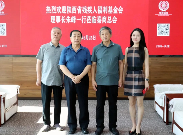 6月25日,陜西省殘疾人福利基金會理事長朱峰一行到訪秦商總會參觀交流,秦商總會黨委書記、執(zhí)行會長劉阿津,秦商總會常務(wù)理事、國力集團總經(jīng)理鄧雪等陪同。