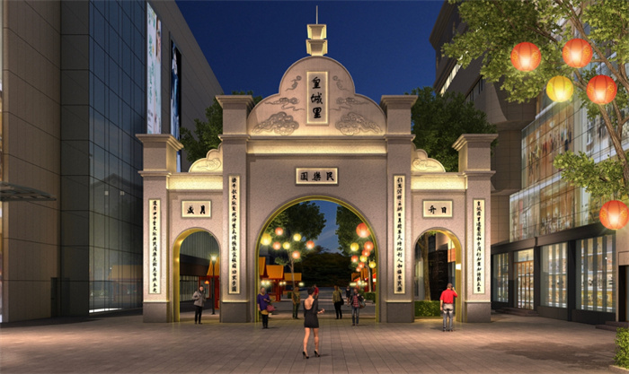 1928年,馮玉祥和時任陜西省政府主席的宋哲元,為促進(jìn)地方經(jīng)濟(jì)發(fā)展,在四周圈垛圍墻,東南西北各筑一座三孔拱門,在院內(nèi)建造了一座可容納數(shù)百人的禮堂,圍繞著禮堂又修建了一些店鋪。取“與民同樂”之意,定名“民樂園”,設(shè)想以民樂園為中心,逐漸發(fā)展,形成一個繁榮的市場。