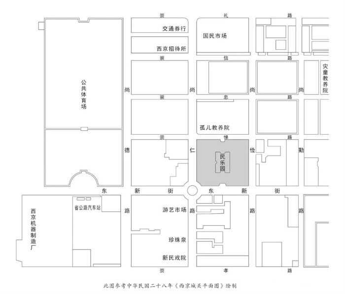 據(jù)《新城區(qū)志》載:民國十七年(1928年)9月18日,民樂園在東新街北側(cè)落成。