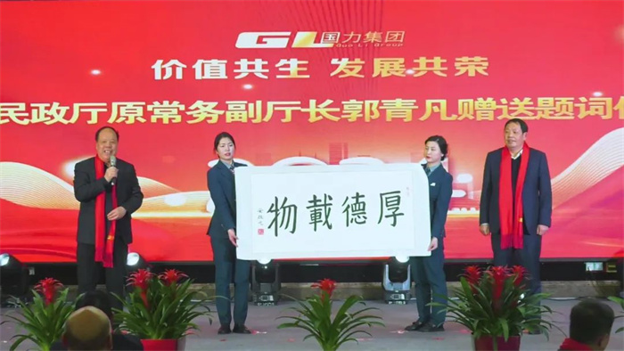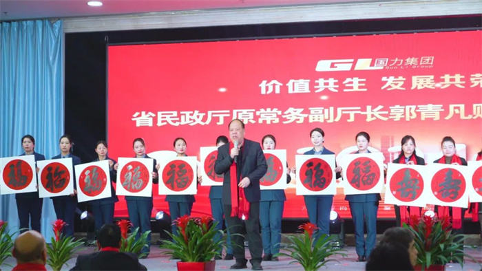 大會期間,郭青凡廳長轉(zhuǎn)達(dá)了陜西省委原書記安啟元對國力集團(tuán)全體員工的慰問及題贈書法作品“厚德載物”,并現(xiàn)場書寫“歡迎光臨,國力屹立”和十幅“壽”、十幅“福”字贈送給國力集團(tuán)及“陜亮家園”的老人們,寄語國力集團(tuán)助力民政、助殘事業(yè)高質(zhì)量發(fā)展的美好期許。