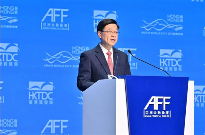 ▲香港特區(qū)行政長(zhǎng)官李家超在亞洲金融論壇致辭。