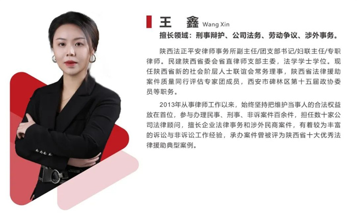 王鑫律師在積極參與2023年度碑林區(qū)依法治區(qū)、法治政府建設、司法行政系統工作中表現出色,榮獲年度優(yōu)秀律師稱號。這一榮譽不僅是對王鑫律師個人能力的肯定,更是對陜西法正平安律師事務所的認可和支持。