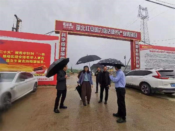 4月30日,武漢市發(fā)改委一級調(diào)研員李現(xiàn)剛,武漢城市圈研究會會長李春洋,湖北省武漢城市圈研究會研究助理劉琴、黃夢苑等一行深入湖北紅安國力信達康養(yǎng)產(chǎn)業(yè)園項目施工現(xiàn)場進行調(diào)研。紅安縣委常委、統(tǒng)戰(zhàn)部部長韓瓊,縣殘聯(lián)黨組書記、理事長阮俊,縣殘聯(lián)黨組成員、副理事長余中英等領(lǐng)導參與調(diào)研活動。國力集團秦雙林、石偉等陪同。