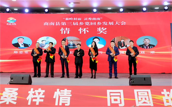 商南縣第三屆鄉(xiāng)黨回鄉(xiāng)發(fā)展大會(huì)向鄧雪總經(jīng)理頒發(fā)“情系縣域經(jīng)濟(jì)高質(zhì)量發(fā)展人士情懷獎(jiǎng)”