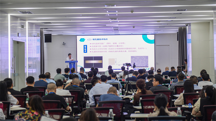 主旨報告環(huán)節(jié),惠州市科近離子膜材料研究院院長莫丹,西北大學教授韓小龍,西安交通大學副教授王嘉楠,科近膜科技公司總經(jīng)理陳洋分別圍繞重離子微孔膜材料的性能特點、透析應用、鋰電池隔膜研發(fā)以及應用前景暢所欲言,帶來了精彩的知識分享和思想碰撞。