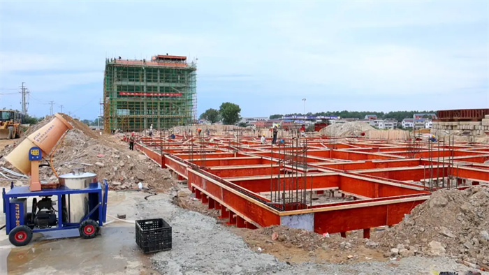 近日,在湖北紅安國(guó)力信達(dá)康養(yǎng)產(chǎn)業(yè)園項(xiàng)目現(xiàn)場(chǎng),工人師傅們正忙著對(duì)門(mén)診醫(yī)技樓基礎(chǔ)梁進(jìn)行捆扎鋼筋、構(gòu)筑模版等施工作業(yè),對(duì)基礎(chǔ)梁澆筑混凝土,門(mén)診醫(yī)技樓已進(jìn)入主體施工階段。