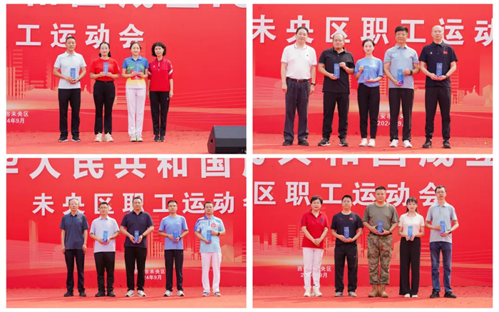 經(jīng)過激烈角逐,運(yùn)動(dòng)會(huì)分別產(chǎn)生了蜈蚣行走、協(xié)力取水、旱地劃船和運(yùn)送乒乓球等四個(gè)比賽項(xiàng)目的一等獎(jiǎng)、二等獎(jiǎng)和三等獎(jiǎng)各4個(gè),產(chǎn)生道德風(fēng)尚獎(jiǎng)3個(gè)。分別獲得四個(gè)項(xiàng)目比賽三等獎(jiǎng)的是未央城建集團(tuán)代表隊(duì)、譚家街道代表隊(duì)、徐家灣街道代表隊(duì)和區(qū)文旅體育局代表隊(duì);分別獲得四個(gè)項(xiàng)目比賽二等獎(jiǎng)的是區(qū)住建局代表隊(duì)、未央宮街道代表隊(duì)、區(qū)紀(jì)委監(jiān)委代表隊(duì)和區(qū)退役軍人事務(wù)局代表隊(duì);區(qū)衛(wèi)健局代表隊(duì)、辛家廟街道代表隊(duì)、未央城建集團(tuán)代表隊(duì)和區(qū)市場(chǎng)監(jiān)管局代表隊(duì)分別在四個(gè)項(xiàng)目的比賽中突出重圍,將四個(gè)項(xiàng)目的一等獎(jiǎng)收入囊中。同時(shí)獲得本次大賽道德風(fēng)尚獎(jiǎng)的代表隊(duì)分別是區(qū)投資商務(wù)聯(lián)合代表隊(duì)、區(qū)審計(jì)局代表隊(duì)、大明宮街道代表隊(duì)。