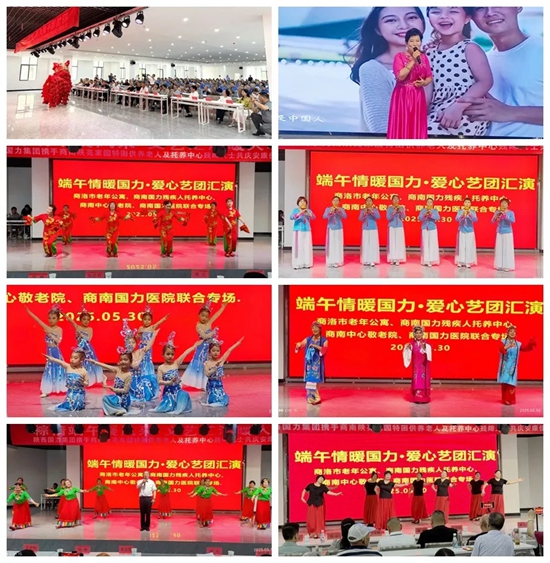 活動首日(5月30日),陜西商南板塊率先啟幕。在“陜亮家園”示范康養(yǎng)園區(qū),商南縣愛心藝術(shù)團攜手國力殘疾人托養(yǎng)中心、國力醫(yī)院醫(yī)護團隊、幼兒園等,帶來舞蹈《好運全都來》《娥曼》《中國美》《禮貌歌》、歌曲《父親》、《月亮女神》《國家》《吉祥歡歌》、詩朗誦《我驕傲,我是中國人》、葫蘆絲合奏《荷塘月色》、獅子舞《太平盛世》、戲曲選段《今日是我出閨前一晚上》《抬花轎》《丁郎認(rèn)父選段·游花園》及紅歌聯(lián)唱、手語舞蹈等精彩節(jié)目。舞臺上,托養(yǎng)殘疾人與老人共同演繹的《沒有共產(chǎn)黨就沒有新中國》合唱,贏得現(xiàn)場陣陣掌聲。