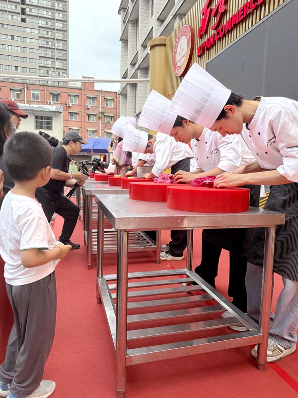 舌尖躍動盛唐味:烹飪專業(yè)師生奉上“舌尖上的盛唐”創(chuàng)意盛宴,傳統(tǒng)三秦美食煥發(fā)新彩,令賓客食指大動;食品系學子的翻糖藝術(shù)與精巧面點,造型逼真,香氣誘人,成為視覺與味覺的雙重享受。