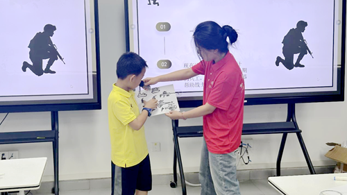 在開展軍事科普教育活動的過程中,實踐隊成員以“小小科學家”為主題,引導兒童深入探索現(xiàn)代武器的相關(guān)知識,并激發(fā)他們主動參與的熱情,繪制出他們想象中的武器設計圖,并分享其創(chuàng)作理念。實踐隊隊員采用深入淺出的講解方式,詳細介紹了現(xiàn)代兵器知識,涵蓋步槍、坦克、潛艇及戰(zhàn)斗機等軍事裝備。她運用通俗易懂的語言,幫助孩子們對這些軍事裝備形成了更為深刻的認知。