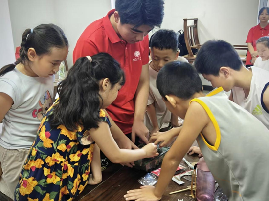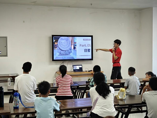 圖3 實(shí)踐隊(duì)員講解古代計(jì)時(shí)器知識(shí)。張?chǎng)H沄供圖