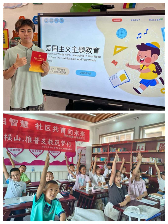 2025年7月11日,我們站上講臺,為古城路社區(qū)的青少年帶來了一堂生動的“青春思政課”。結合時事熱點與青年擔當,我們以通俗易懂的語言、互動問答的形式,講述家國情懷、理想信念和奮斗精神。課堂氣氛熱烈,孩子們積極思考,踴躍發(fā)言。我們用青年視角解讀理論,用青春話語傳遞能量,努力在孩子們心中播撒愛國愛黨、向上向善的種子,引導他們樹立正確的三觀。思政育人,我們用心發(fā)聲。