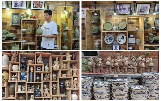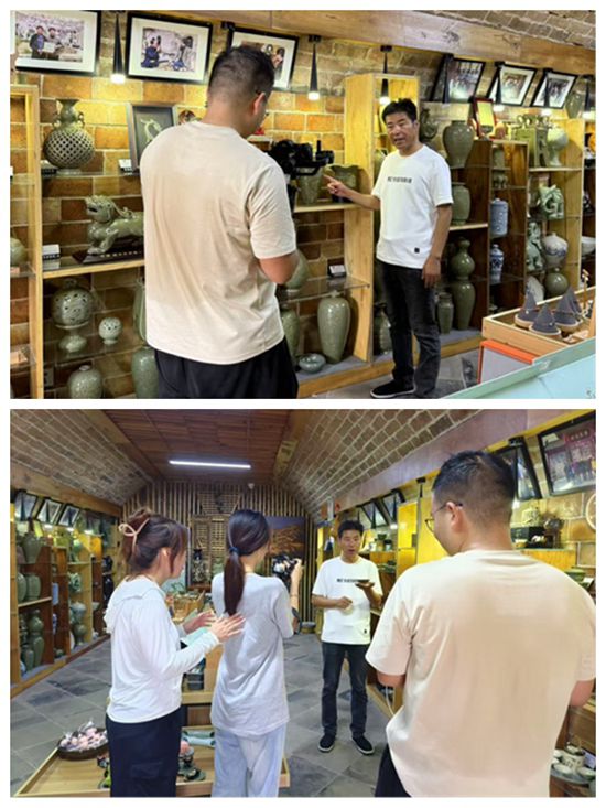 剛邁進(jìn)李家瓷坊,隊員們就被眼前的景象吸引。古樸的建筑里,陳列架上青瓷、彩瓷錯落有致,造型或古樸典雅,或靈動精巧。李家瓷坊第十代傳承人李鐘樓笑著迎上來,手中捧著一件青瓷瓶,開始講述陶瓷故事。從選料時對高嶺土細(xì)膩度的挑剔,到拉坯時手腕與陶輪默契配合,再到施釉、燒制環(huán)節(jié)對溫度與火候的精準(zhǔn)把控,李鐘樓的話語,讓 “入窯一色,出窯萬彩” 不再只是傳說,而是匠人們代代堅守的技藝密碼 。隊員們圍在旁,用相機(jī)記錄瓷器細(xì)節(jié),也將這份對傳統(tǒng)的敬意,定格在鏡頭里。