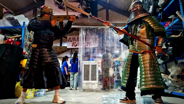 甲胄,作為傳統(tǒng)非遺中的璀璨明珠,承載著千年的鐵血記憶與深厚的文化底蘊(yùn)。它是歲月的見(jiàn)證者,以堅(jiān)硬的材質(zhì)和精巧的工藝,訴說(shuō)著古代戰(zhàn)場(chǎng)的風(fēng)云變幻。7月14日,實(shí)踐隊(duì)員們跟隨成氏盔甲修造技藝傳承人到其工作室——玉衡司,參觀體驗(yàn)古代甲胄的制作工藝。“古代甲胄,于精敲細(xì)錘間,鑄刻時(shí)光風(fēng)骨,留存歲月鋒芒。”傳承人老師的每一次敲擊都是對(duì)歷史的復(fù)刻,每一次調(diào)整都是對(duì)藝術(shù)的執(zhí)著追求。在體會(huì)過(guò)甲胄制作的魅力之后,實(shí)踐隊(duì)員們嘗試試穿傳統(tǒng)甲胄。厚重的甲胄包含著將士們的愛(ài)國(guó)之心,傳統(tǒng)與現(xiàn)代的交織更體現(xiàn)著傳承者的開(kāi)拓與創(chuàng)新。在與老師們交流過(guò)后,隊(duì)員們誠(chéng)愿這份傳承的薪火,在未來(lái)歲月里持續(xù)燃燒,照亮甲胄文化前行的道路。