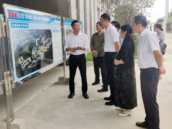 8月12日,湖北省浠水縣委常委、常務(wù)副縣長鮑晨輝率領(lǐng)由縣人大、發(fā)改、政數(shù)等多部門領(lǐng)導(dǎo)組成的招商考察團,深入湖北紅安國力康養(yǎng)產(chǎn)業(yè)園開展實地調(diào)研。紅安縣民政局局長吳祖焱,國力集團湖北鄂州洽談部副部長程功湖、集團銀發(fā)經(jīng)濟投資洽談部副部長李培滔陪同調(diào)研。雙方就康養(yǎng)產(chǎn)業(yè)規(guī)劃、項目建設(shè)及運營模式等核心議題進行了深入交流,共同為縣域康養(yǎng)產(chǎn)業(yè)的高質(zhì)量發(fā)展進行戰(zhàn)略謀劃。