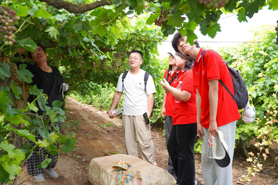 實(shí)踐隊(duì)員了解葡萄生長(zhǎng)情況
