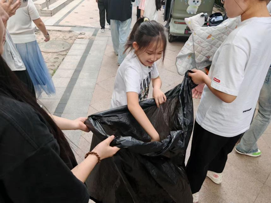 孩子們與大學(xué)生志愿者一起拿起工具,走入樓道、花壇和公共區(qū)域,撿拾垃圾、分類投放、清掃落葉。“綠芽行動”雖從小處著手,卻傳遞出整潔家園、人人有責(zé)的信念。
