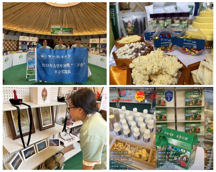 第二站,實(shí)踐團(tuán)隊前往內(nèi)蒙古傳統(tǒng)那達(dá)慕盛會,在正鑲白旗特色產(chǎn)品展銷區(qū)開展實(shí)踐活動。團(tuán)隊成員深入了解草原特色產(chǎn)品的制作工藝、文化內(nèi)涵與賣點(diǎn),用標(biāo)準(zhǔn)普通話向現(xiàn)場游客講解產(chǎn)品背后的草原文化故事,開啟線上直播,以清晰流暢的普通話介紹產(chǎn)品特點(diǎn)、使用場景與購買方式。團(tuán)隊還在那達(dá)慕現(xiàn)場向商販與游客進(jìn)行訪談與問卷發(fā)放,調(diào)研普通話在產(chǎn)品推廣、文化傳播中的實(shí)際作用,為鄉(xiāng)村振興注入語言與數(shù)字融合的新動能。