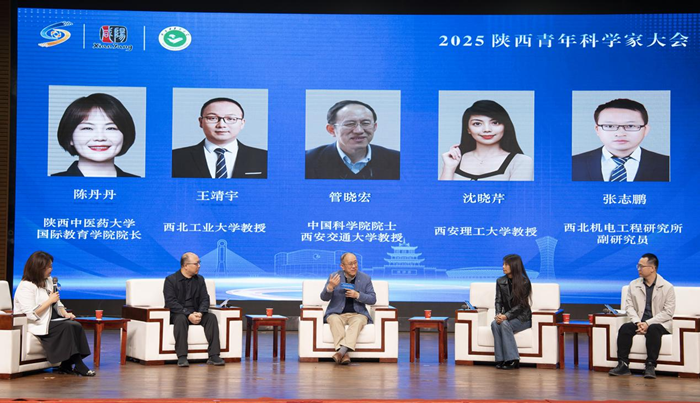 對(duì)話交流環(huán)節(jié),管曉宏院士與西北工業(yè)大學(xué)教授王靖宇、西安理工大學(xué)教授沈曉芹、西北機(jī)電工程研究所副研究員張志鵬、陜西中醫(yī)藥大學(xué)國(guó)際教育學(xué)院院長(zhǎng)陳丹丹一起圍繞青年科學(xué)家成長(zhǎng)路徑中遇到的科研壓力與研究困惑等方面進(jìn)行了深度探討。