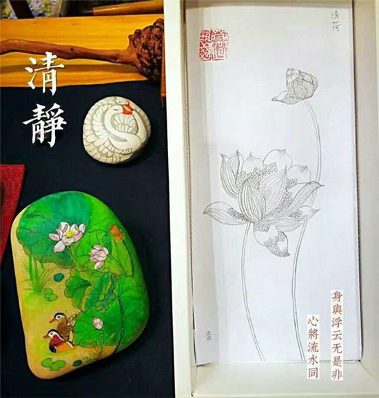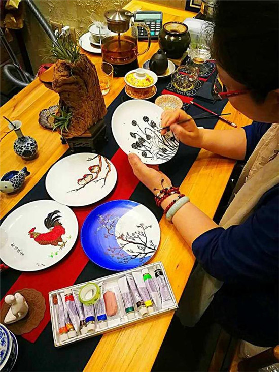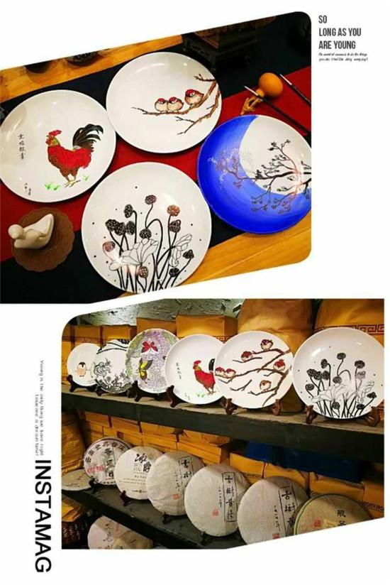自古愛茶之人都愛吟詩作畫,香香也不例外,品茶之余,重拾童年的興趣,拿起畫筆,潛心學(xué)畫,四處拜師學(xué)藝,苦練基本功,石頭記,盤子畫,瓶蓋畫,木板畫,布貼畫……