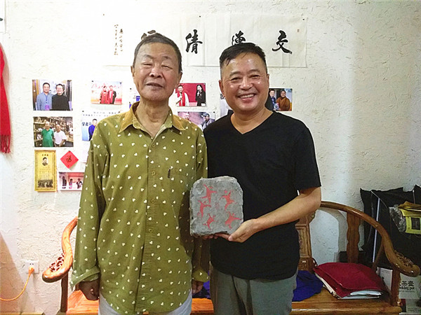 老者消瘦臉帶倦意似曾相識(shí),定睛一看疑竇叢生:這是雕刻大師丁伯令老師嗎?我慌忙上前將信將疑的問(wèn)了句“是丁老師嗎?”得到肯定后,遂將丁老請(qǐng)進(jìn)落座,并恭恭敬敬的倒了杯茶,一番寒暄知曉原委。原來(lái),丁老一直身體有恙在治療當(dāng)中,與之前相比消瘦許多,與我曾經(jīng)看到的特寫(xiě)已判若兩人。不由感嘆,歲月和病痛是兩把鋼刀,隨著年歲增長(zhǎng)避之不及啊!