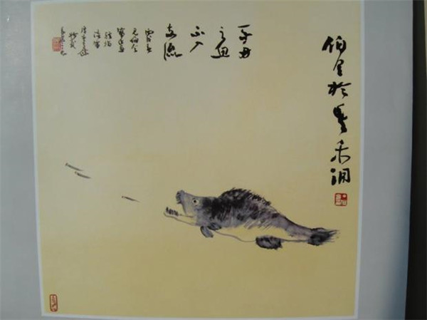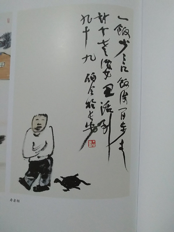 他的畫(huà)也因與各類畫(huà)家交往而兼容并蓄。比如,《好東西》頗有諷刺與幽默意味,有華君武的風(fēng)采。畫(huà)面是一只水鳥(niǎo)盯著一只所謂“老花瓶”所發(fā)出的感嘆,畫(huà)面簡(jiǎn)潔,讓人聯(lián)想!秹壅呦唷樊(huà)的是一個(gè)丑男人,腳下爬著一直鱉,提拔:一飯少三口,飯后百步走。討個(gè)老婆丑,活到九十九。咋一看,有平凹畫(huà)之神韻,令人忍俊不禁,長(zhǎng)安男人之安逸令人叫絕。