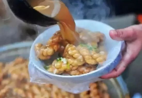 雞市拐還有兩家挑擔(dān)美食,一家是疙瘩油茶,一家是棗模糊,兩家都住在索羅巷,挑的扁擔(dān)一模一樣,年代久遠(yuǎn),烏黑發(fā)亮,兩頭高高翹起,形如彎弓,一般沒有工夫的人還真挑不了這樣的擔(dān)子。賣疙瘩油茶的高挑個(gè)子,光頭锃亮,說話干板,吆喝聲不斷,油茶味香,關(guān)鍵是盛滿油茶后再加入那一勺面疙瘩,面疙瘩形似普通丸子大小,咬在嘴里又酥又香,喝一口油茶,就一個(gè)疙瘩丸子,那叫一個(gè)香啊!